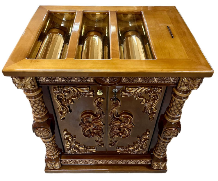 Касса для свечей. Размеры: высота 100см, длина 90см, ширина 65,5см. Внутри присутствует полочка, размеры снизу до полочки: 49см от полки вверх: 36см