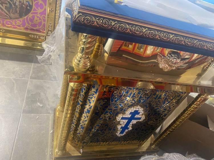 Аналой литі жовті ікони + хрест (лазарна різка) 90х50см (висота 114х99см)