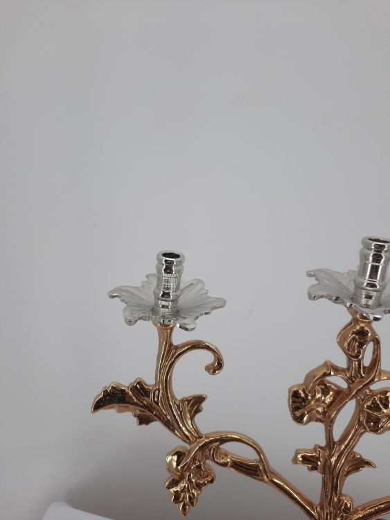 Літейне блюдо, висота з підсвічниками 43 сантиметри, діаметер 31см. Висота підставки 7 см, висота посудин з ковпаками: 31см. Діаметер миски 21см