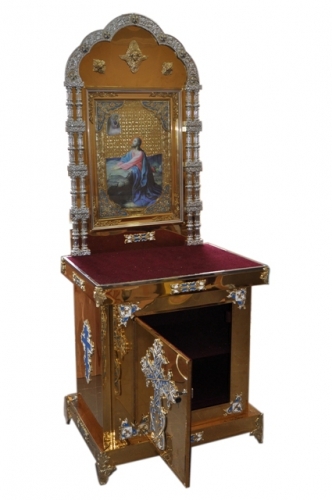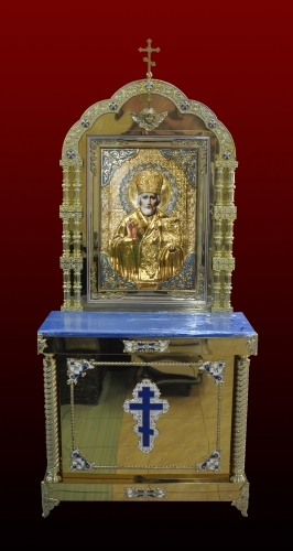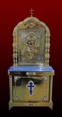 Тумба: Ширина 31см;Длина 90см;Высота 85,5см Икона: Ширина 5см;Длина 81см;Высота 101см Крест 18см Киот напольный Цвета булата и иконы в ассортименте