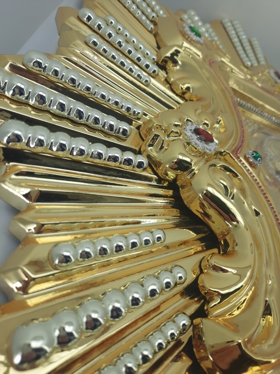 Оздоблення образу: позолота, сріблення, карбування, стрази та стразові ланцюги.