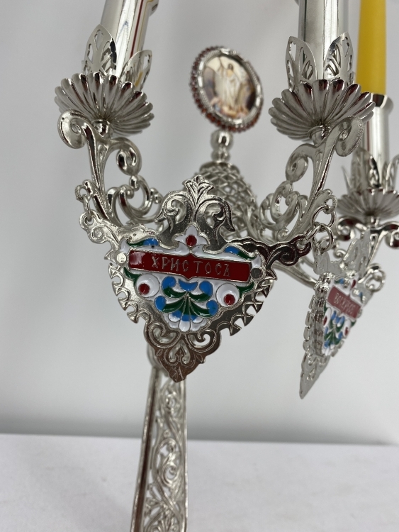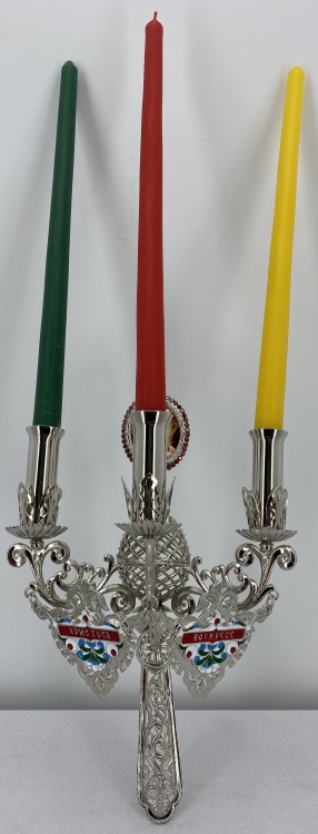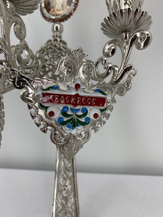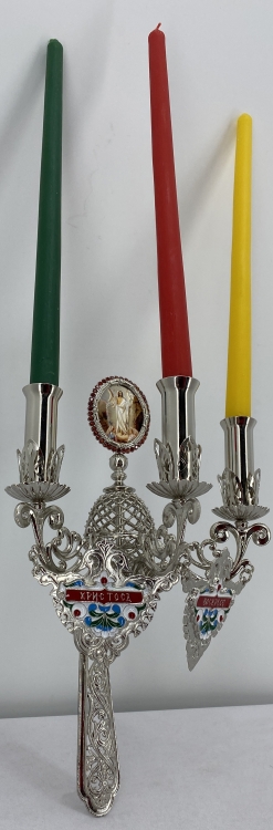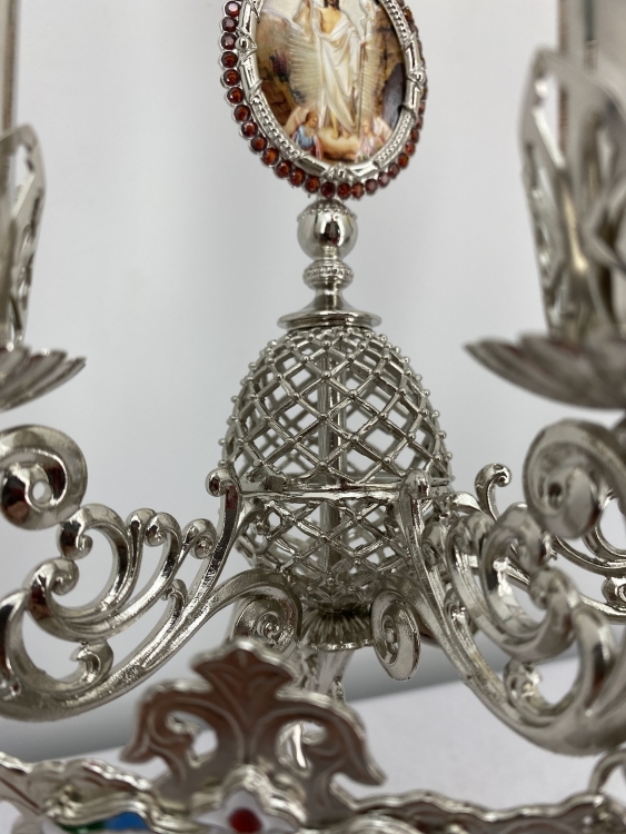 Трисвічник великодній з іконою №16, нікель 29х11см