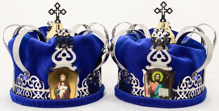 Виготовляються з булату, на якому за допомогою лазеру виконані візерунки. Ікони друковані на булаті, вінці прикрашаються камінчиками. Тканина: Оксамит Діаметер: 20см Ширина зверху: 29см Висота 24см Вага двох вінців: 740г Вага одного 370г