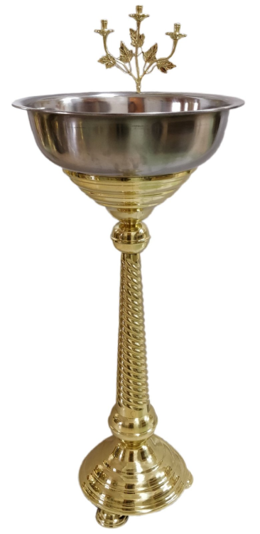 Купіль для хрещення матеріал латунь, миска алюміній, висота до миски 92см, висота з свічником 113 см
