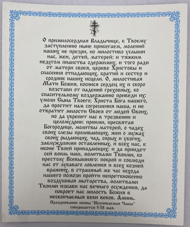 Ікона Богородиці "Невипиванна Чаша" 24х20см