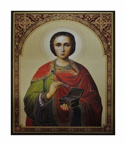 Великомученик Пантелеимон 30х40 - lt00246 - Тисненый лакированный лик напечатанный на картоне. Лик в ассортименте.