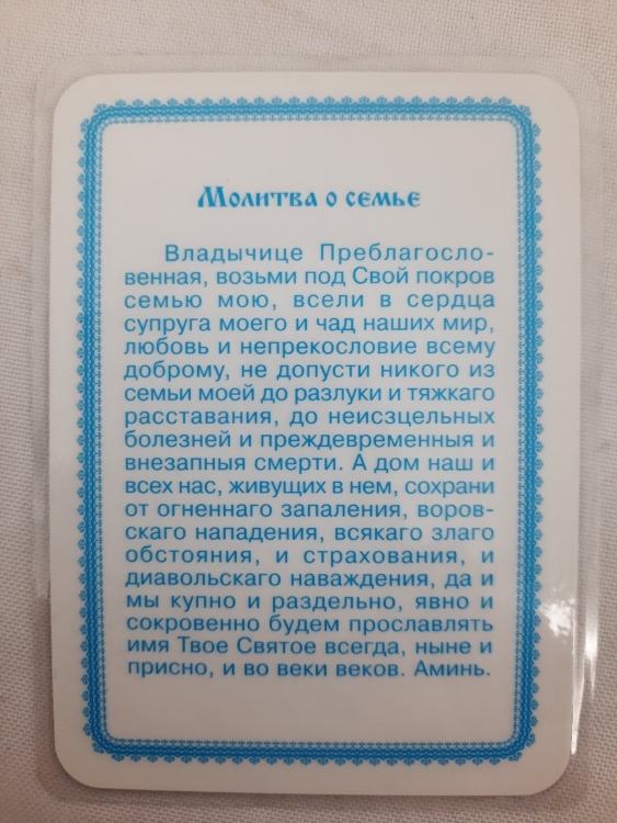 Ламінована ікона Богородиці "Азм я з вами" з молитвою про сім'ю