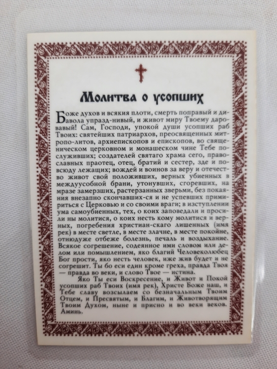 Ламінована ікона Богородиці "Страстна" з молитвою про покійних