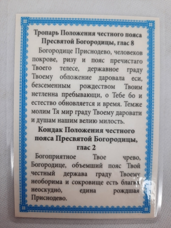 Ламінована ікона "Пояс Пресвятої Богородиці"