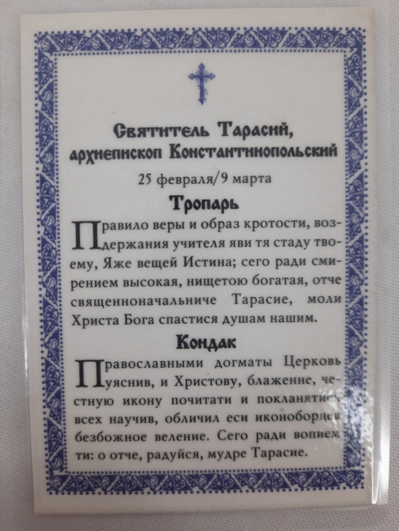 Ламінована ікона св. Тарасій Константинопольський
