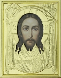 Икона Нерукотворный образ изготовлена ​​на деревянной основе с тонким объемным слоем металла, вылитым литьем, покрываемым имитацией искусственного золота. Размер 9х11