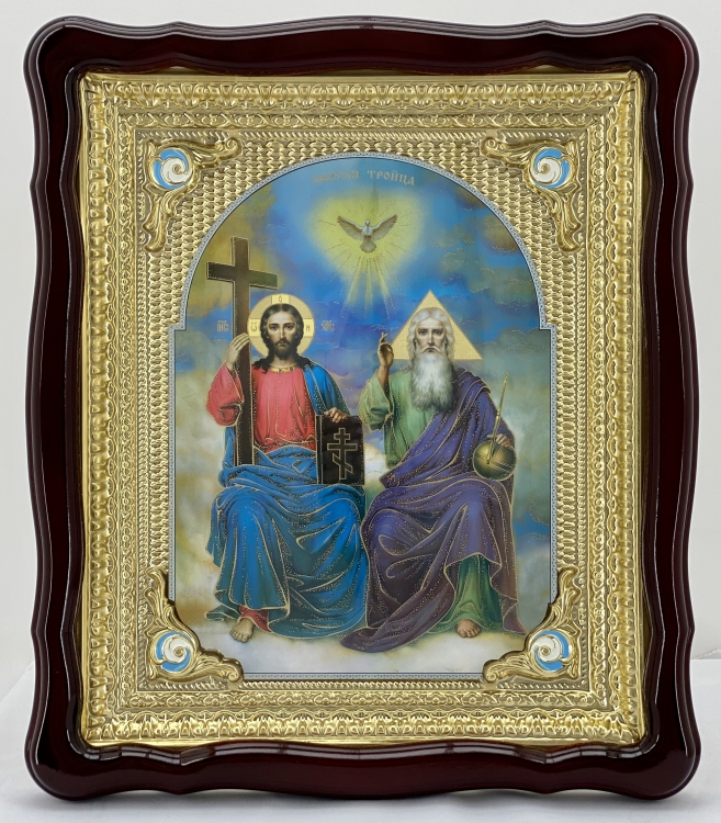 Икона имеет деревянную рамку, которая покрыта лаком, придающим блеск и защищает поверхность от износа. Подрамник изготовлен из пластмассы, и имеет красивый узор, покрывающийся золотистой и цветной краской. Главной характеристикой этой иконы является печатаемая на бумаге литография.