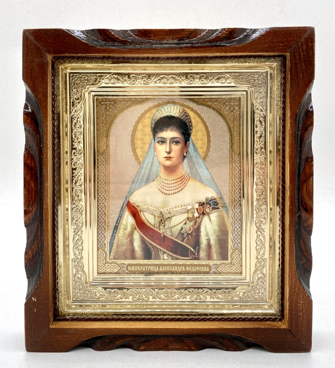 Икона имеет прямоугольную рамку, на которой выполняются узоры с помощью обжига. Подрамник сделан из пластика покрытого золотистой краской Литография выполнена на бумаге. Размер: 19х17