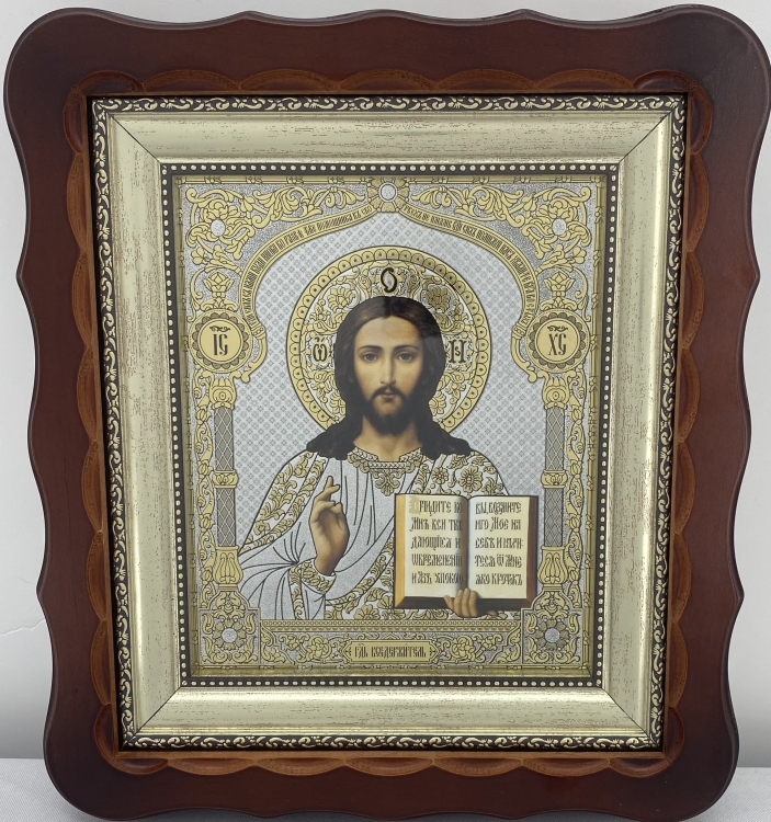 Рамка этой иконы с деревом, коричневый, в форме волны. Багетный подрамник изготовлен из дерева, окрашен золотистой и черной краской. Литография выполнена на бумаге.