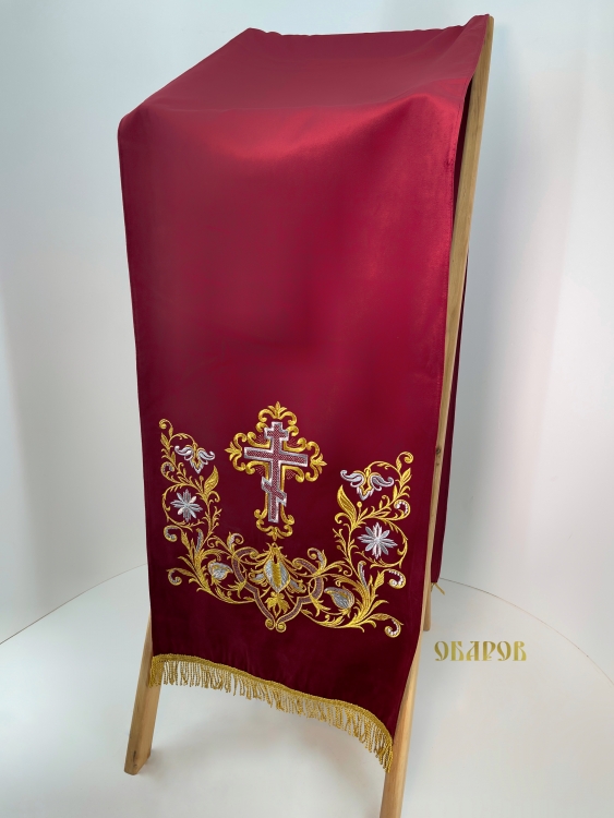 Накидка "Крест цветок" на аналой, с дорогой бахрамой