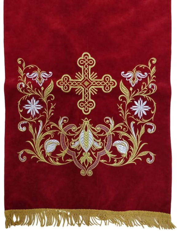 Накидка "Крест с копием" на аналой, с дешевой бахрамой