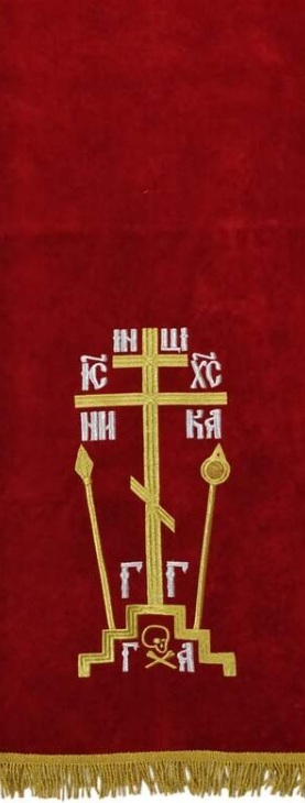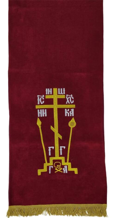 Накидка "Крест с копием" на аналой, с дешевой бахрамой