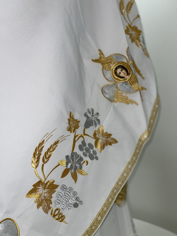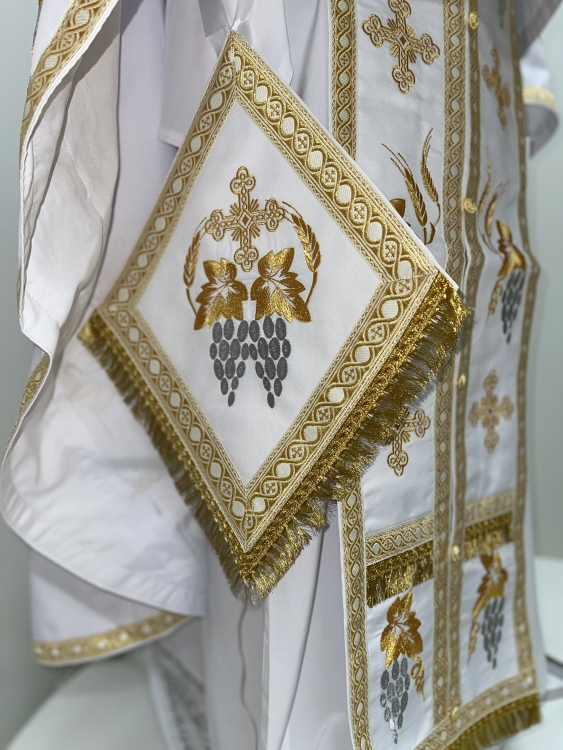 Облачення священника грецький крій, вишите на габардині з пришивним галуном, вишивка "Виноград"