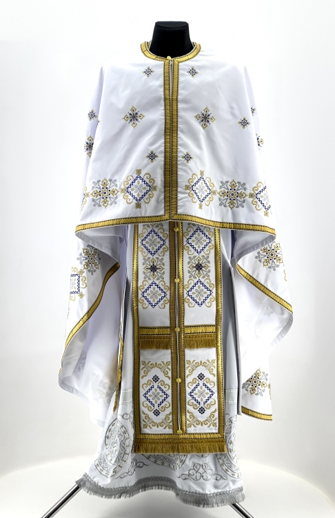 Облачення священника грецький крій, вишите французьким хрестиком на габардині з пришивним галуном