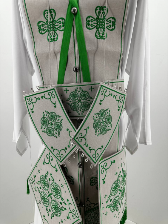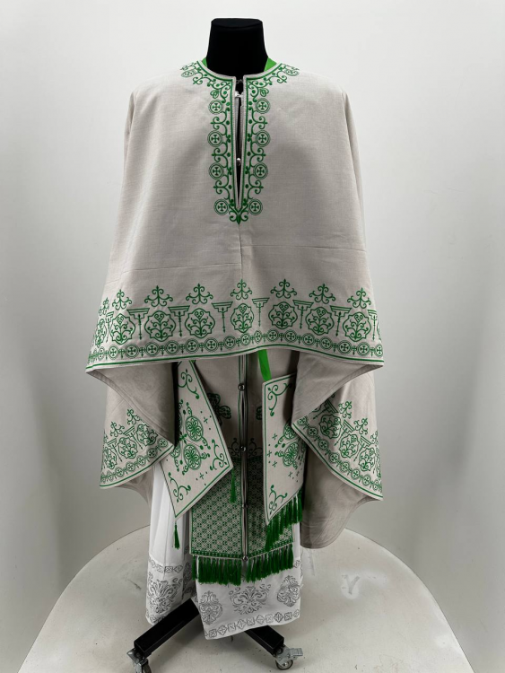 Облачення священника грецький крій, вишите на льон - габардині з пришивним галуном, вишивка "Антична"