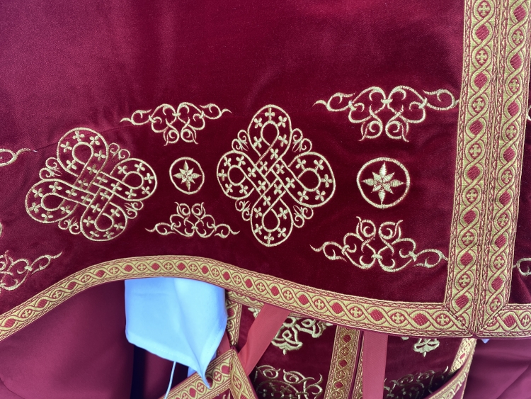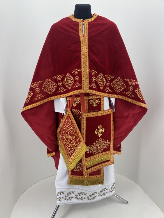 Облачення священника грецький крій, вишите на оксамиті з пришитим галуном