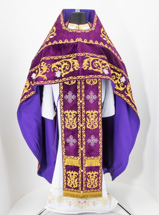 Облачение священника, вишитое на бархате, вишивка "Роза" с вишитим галуном