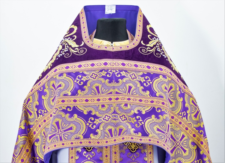 Облачение комбинированное из парчи фиолетового цвета - Х2145 - Ткань"Пасхальный крест"