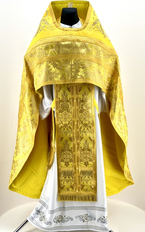 Облачение священника комбинированное, из парчи, с вышитой оплечием, вышивка "Новый узор"