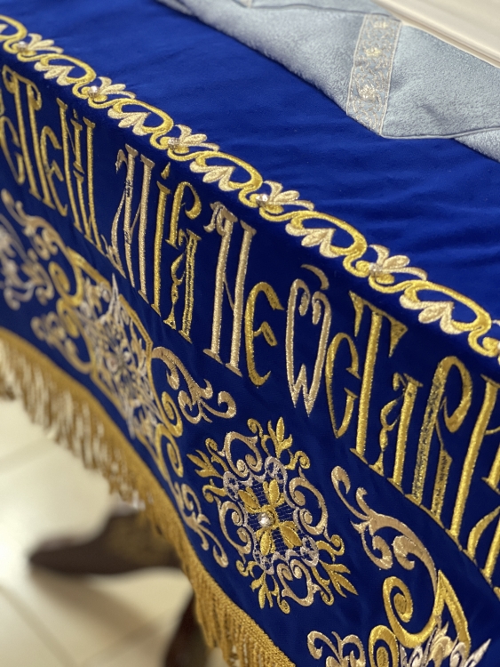 Плащаниця Богородиці на оксамиті 150х90см (вишивка орнамент 2, вишита та розсшита середина)