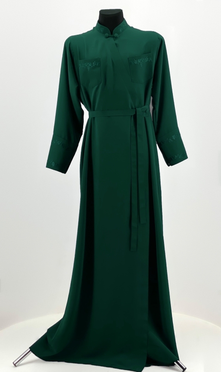 Підрясник на запах, з вишивкою, тканина мокрий шовк