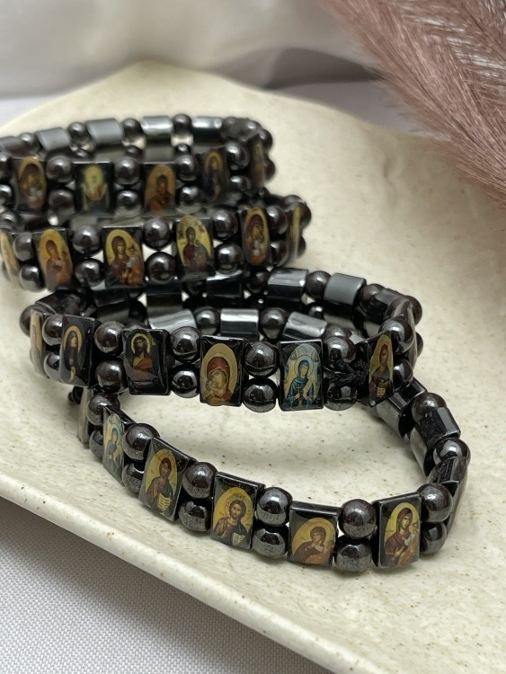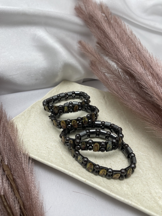Магнитный гематитовый браслет с иконами - Х32731 - .